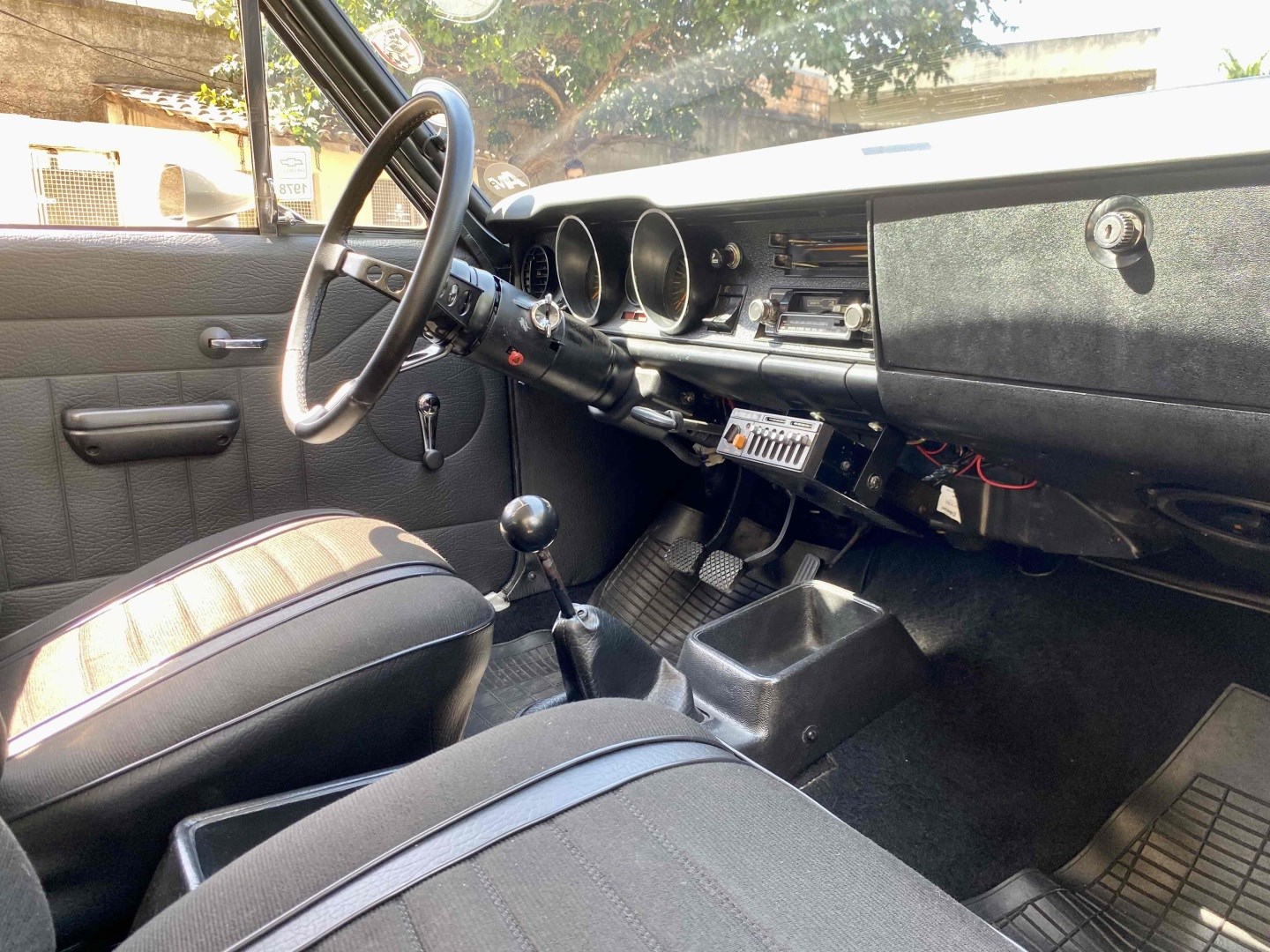 Interior sem detalhes, no padrão original, bancos em tecido preto, som original com antena elétrica funcionando e tojo. Toda parte elétrica do veículo funcionando perfeitamente.